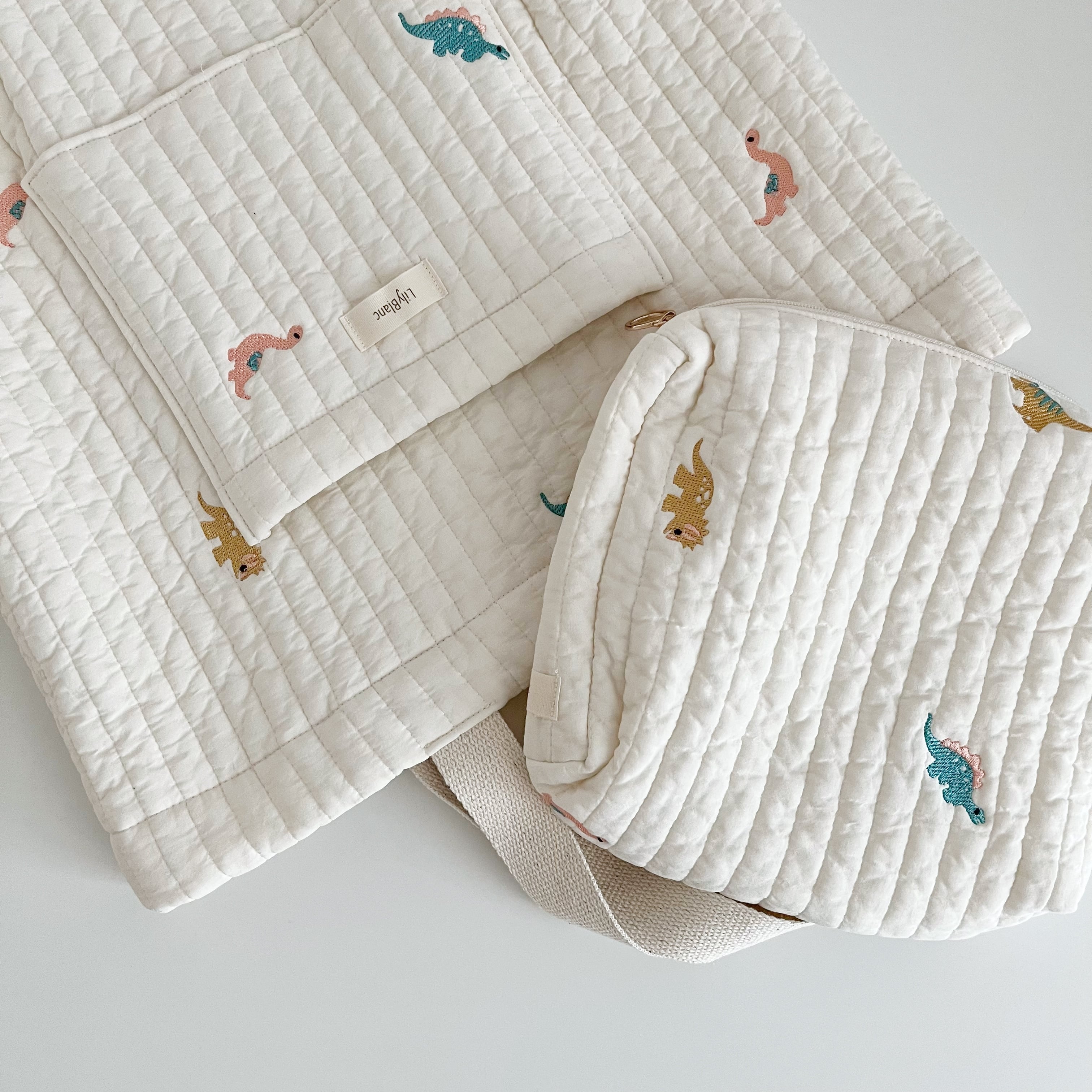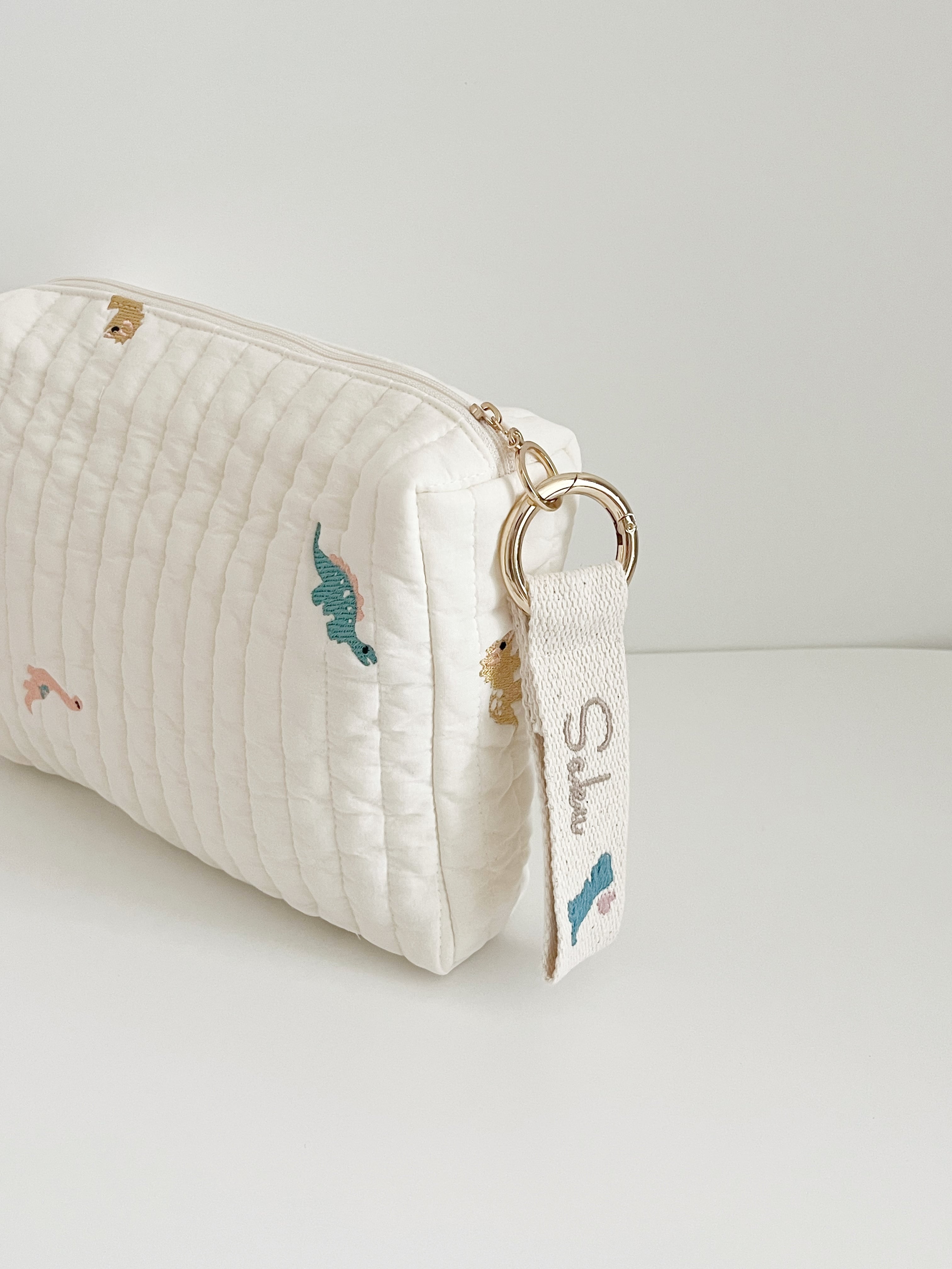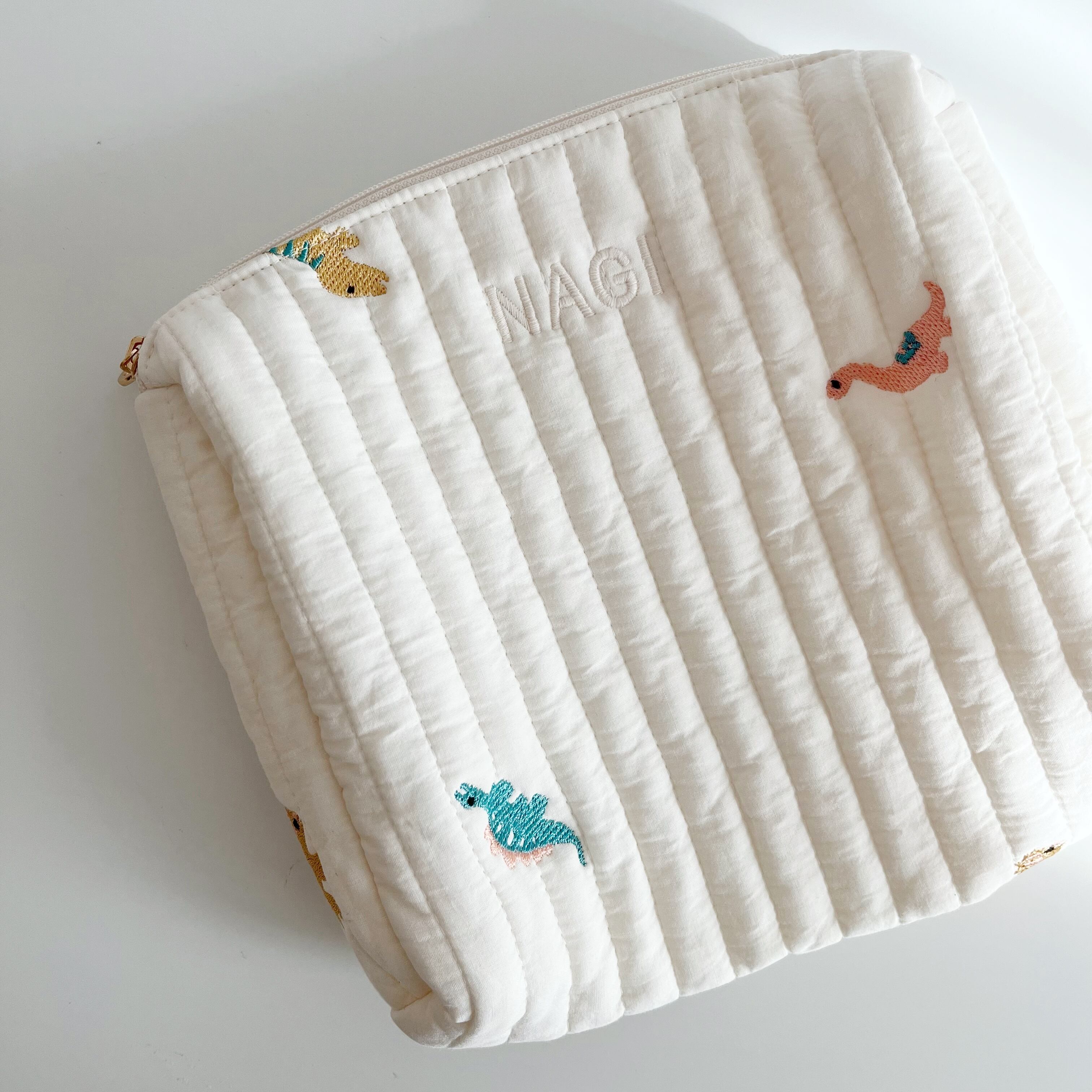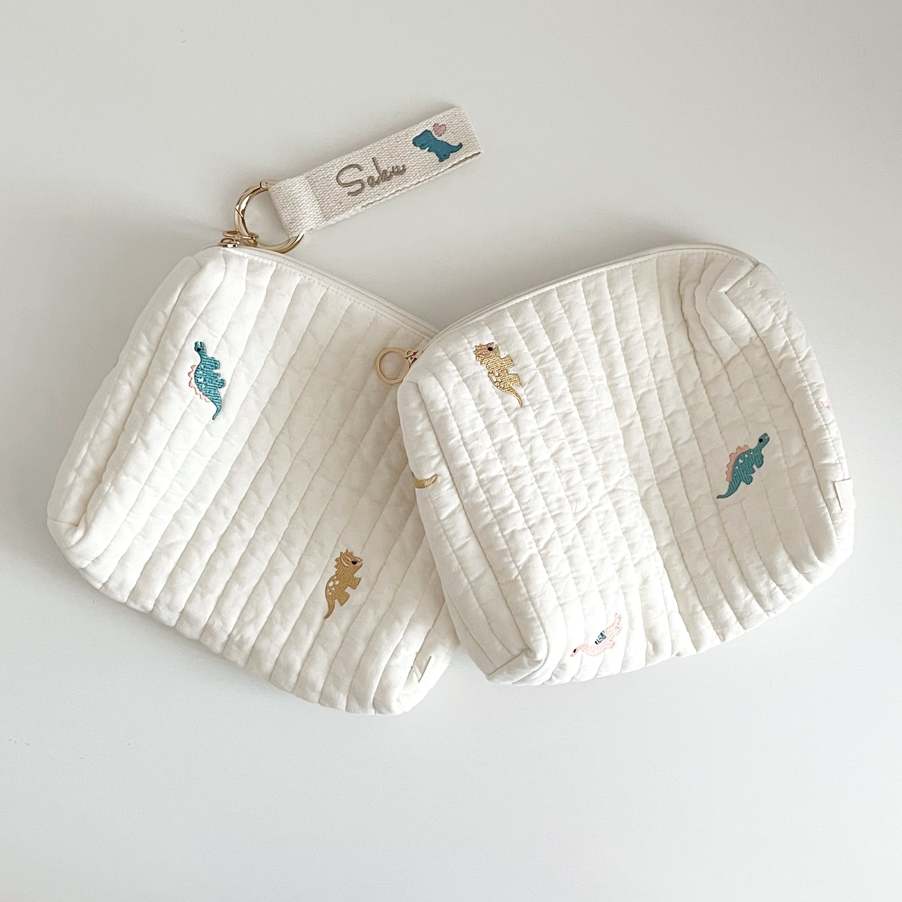 恐竜刺繍がキュートなおむつポーチ୨୧