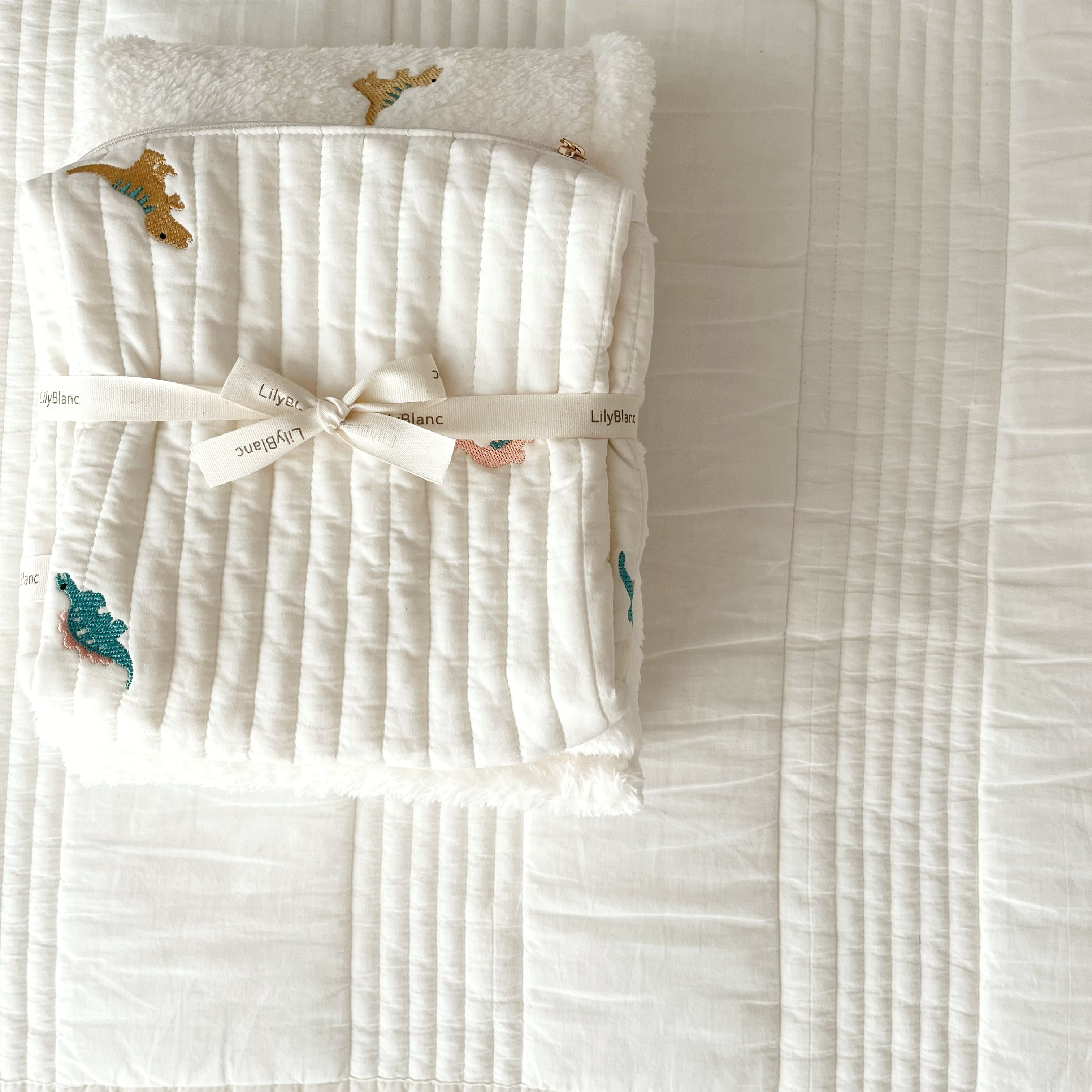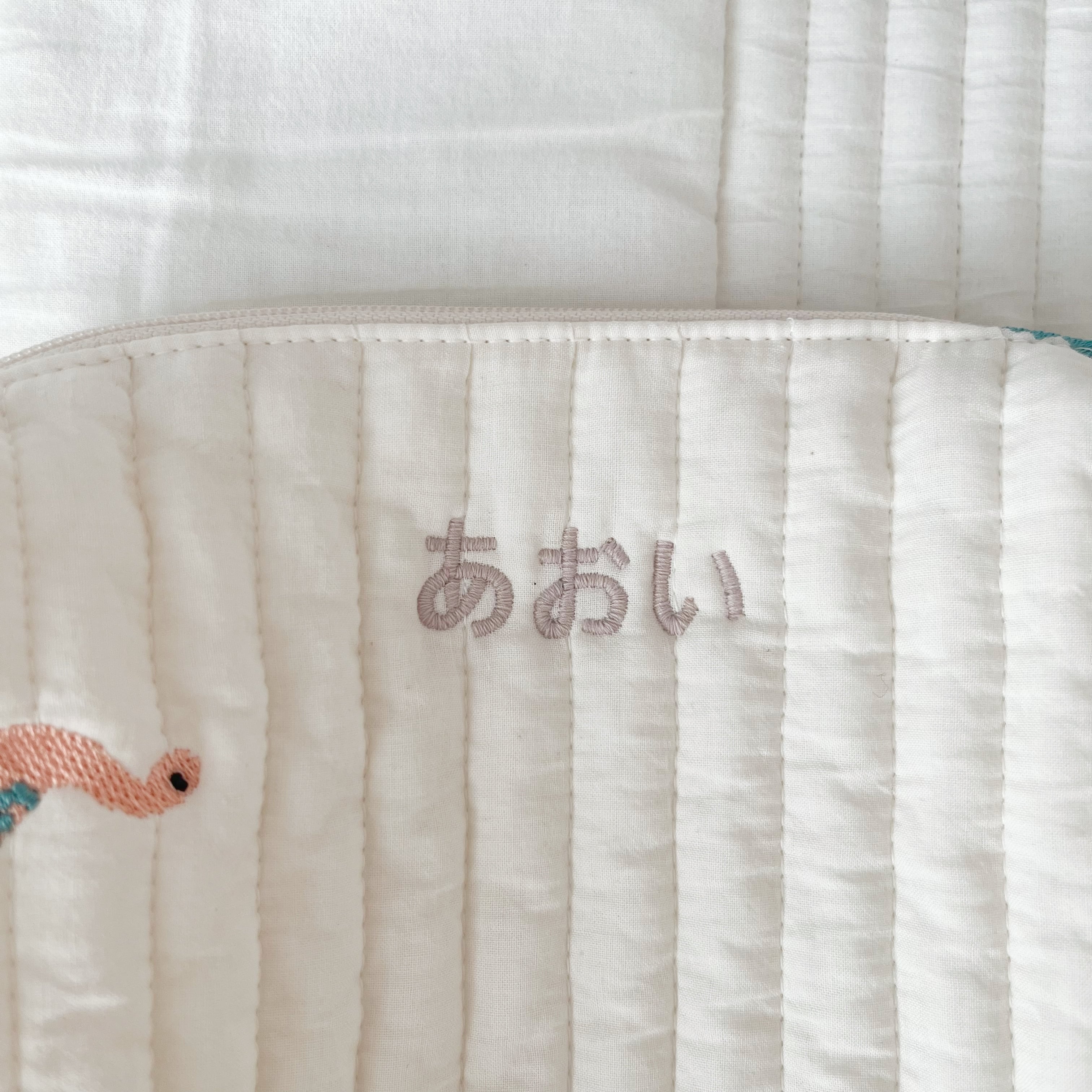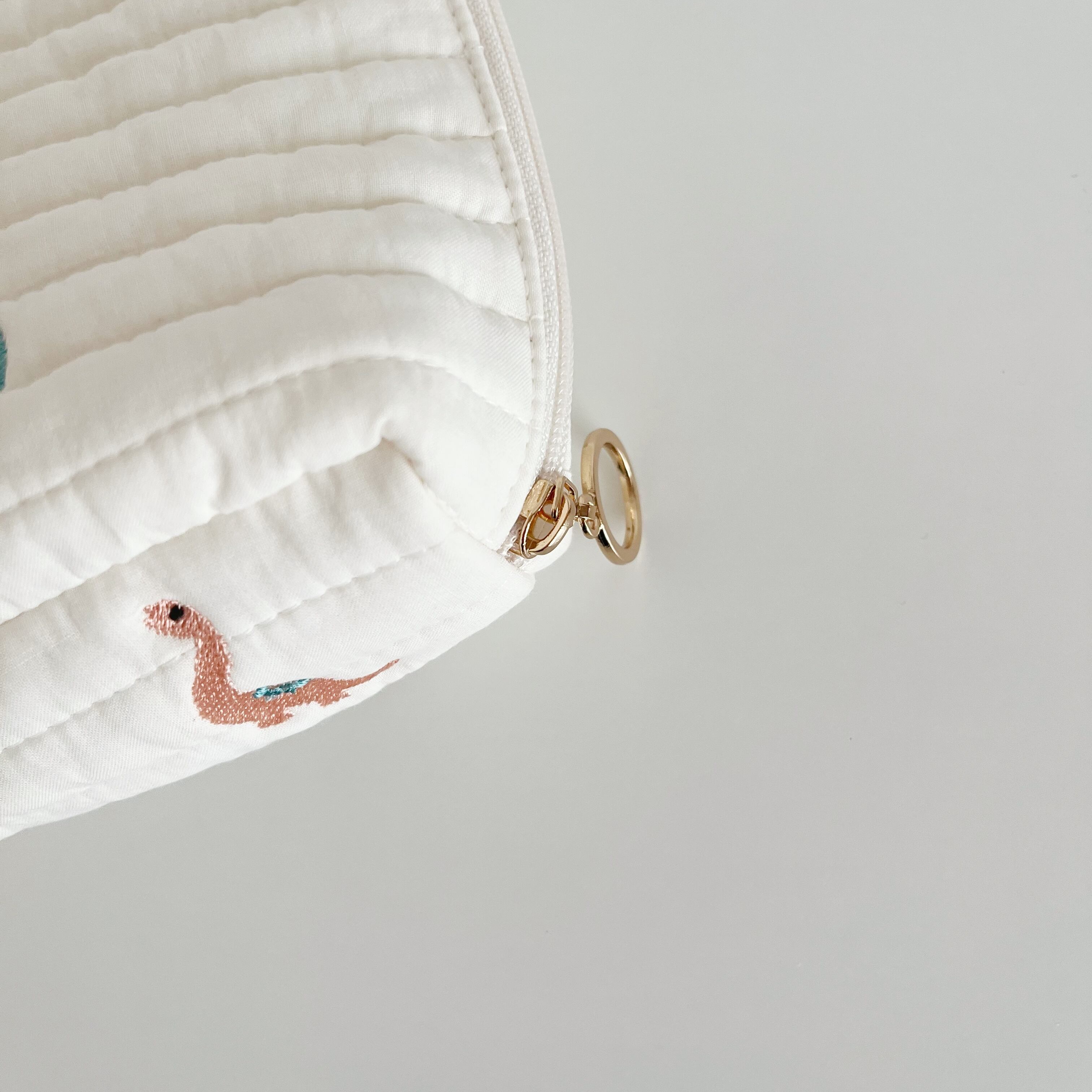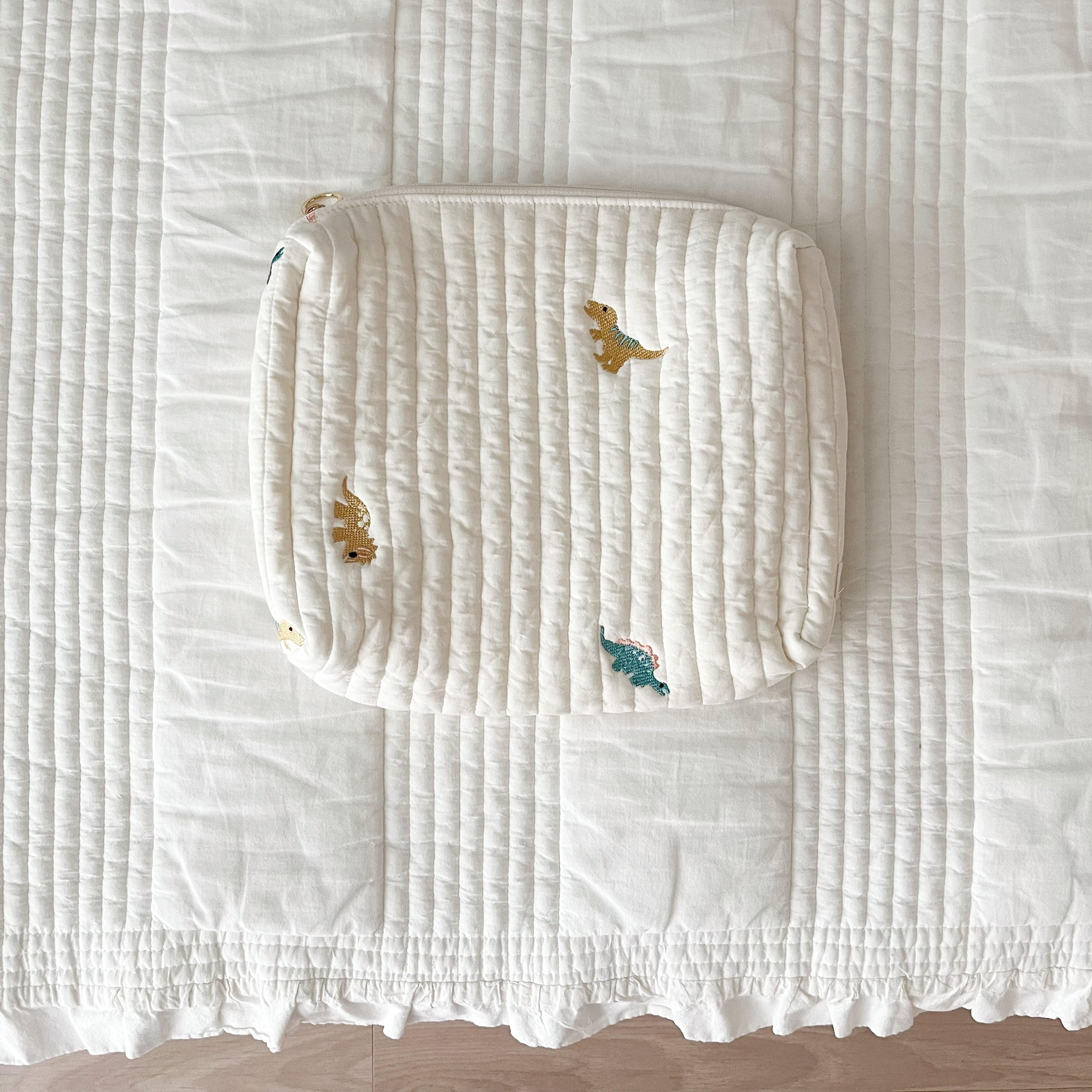 恐竜刺繍がキュートなおむつポーチ୨୧