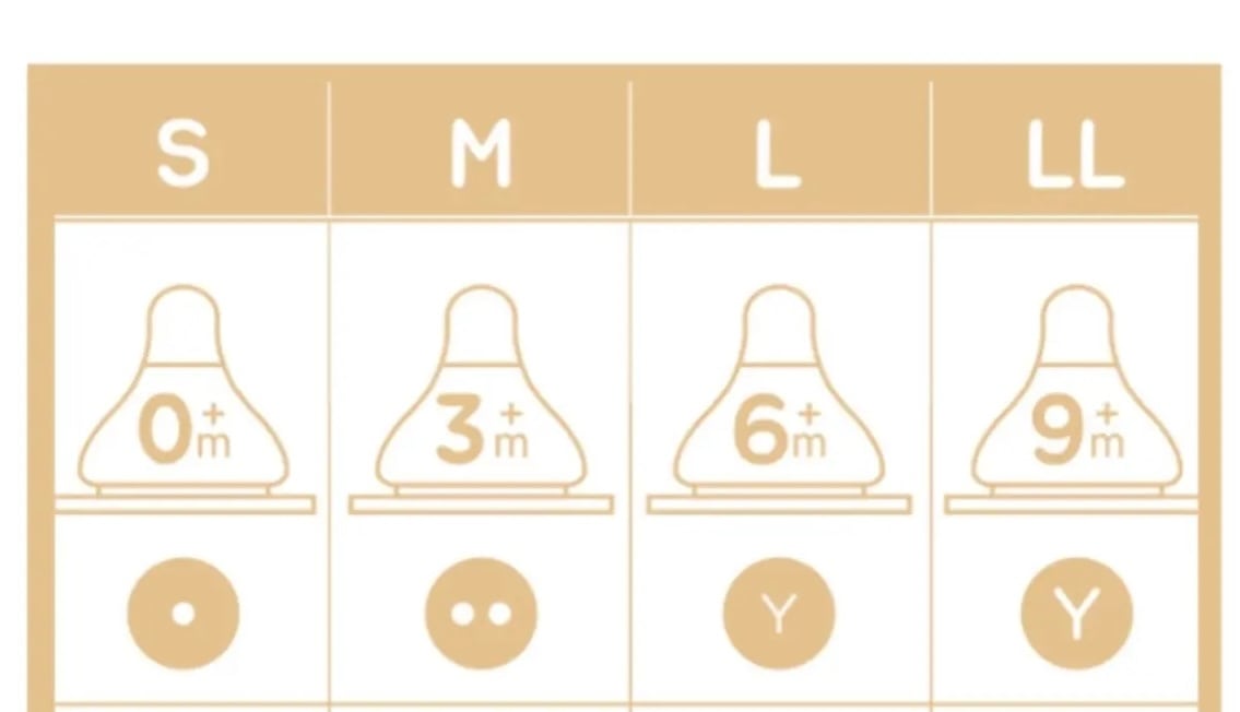 *お子さまによって授乳の進み方も差がありますので月齢は目安としてご覧ください。写真でもニップルの先の切れ目の形をご確認くださいませ。