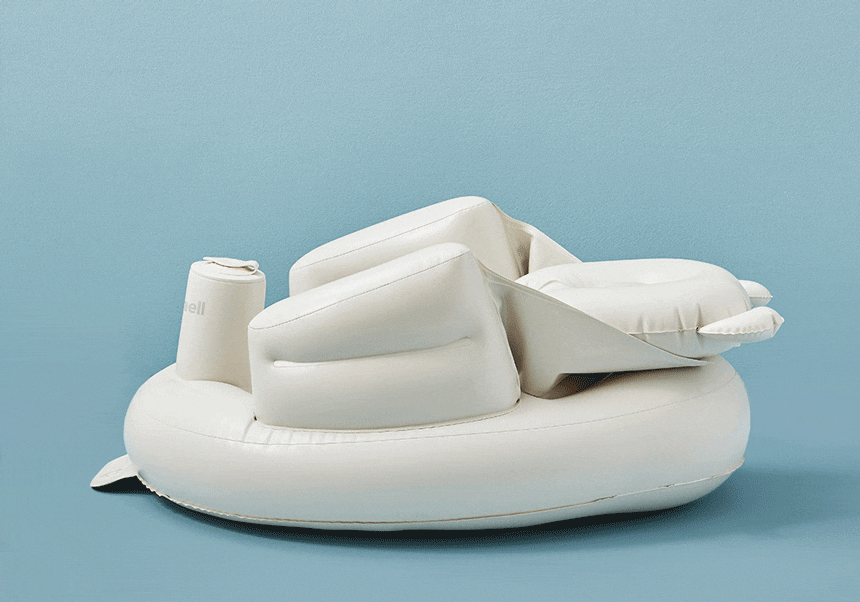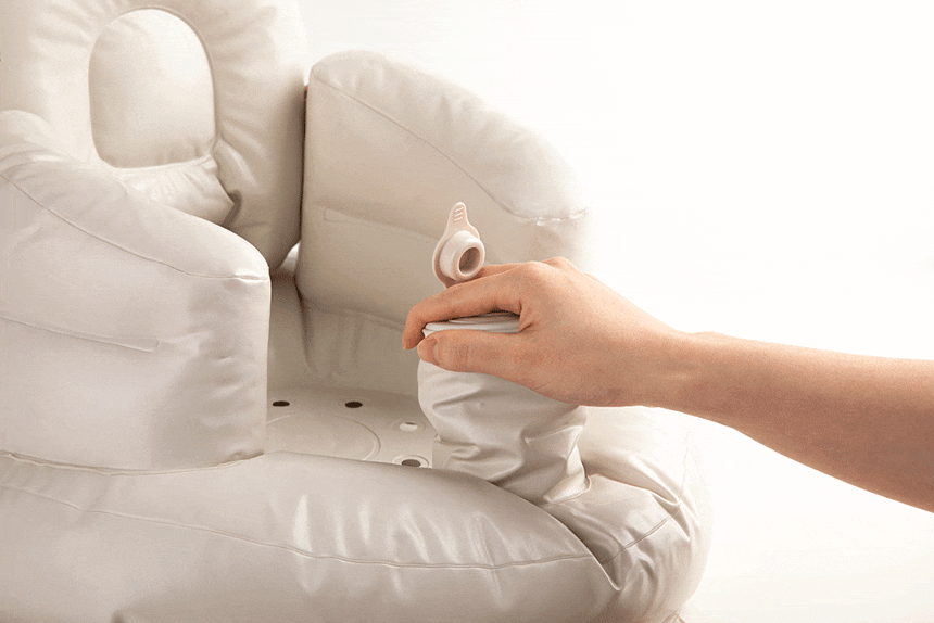 こちらのベビーバスは空気入れが不要で筒状の空気穴の部分を上下に押すだけですぐに空気が入るのもおすすめポイント。