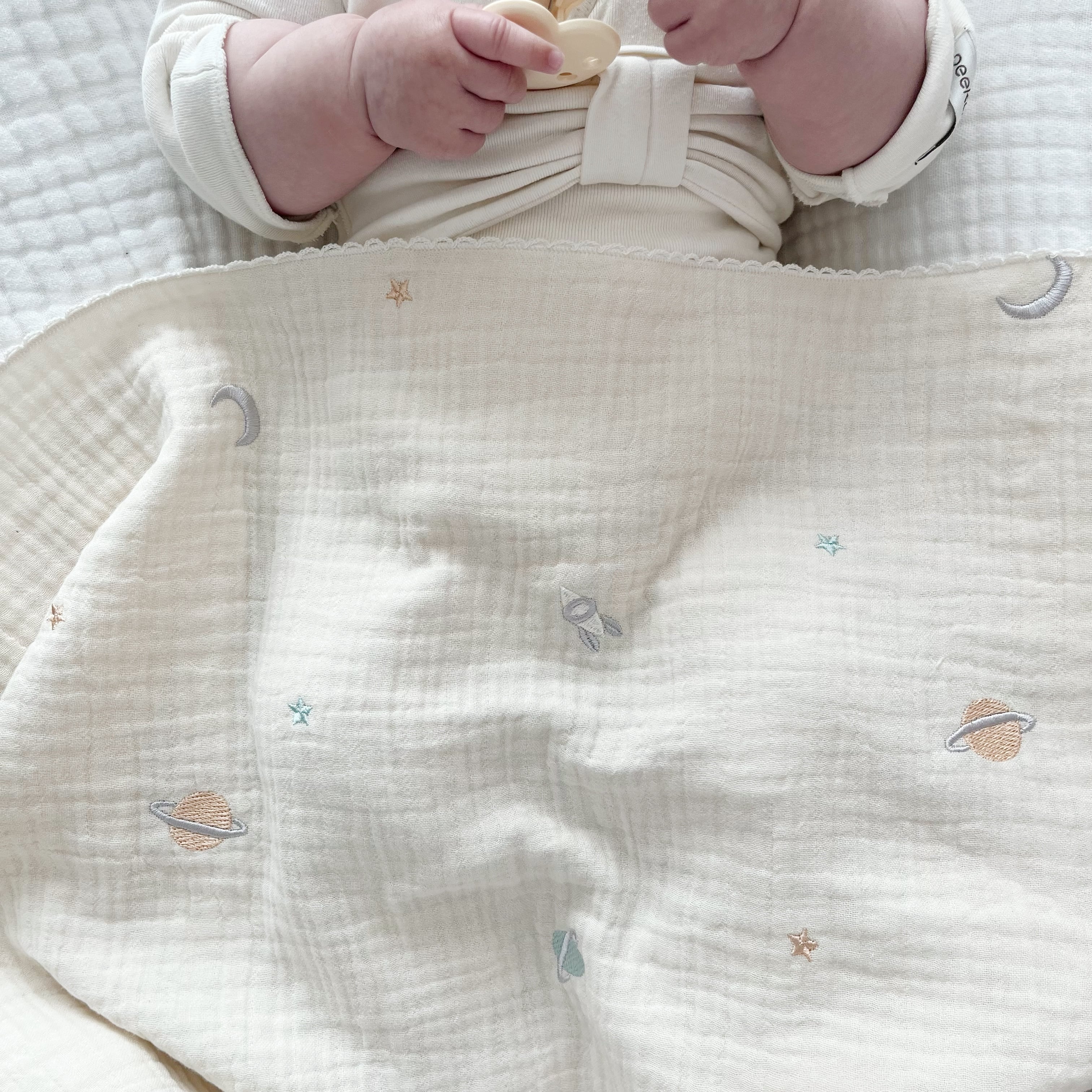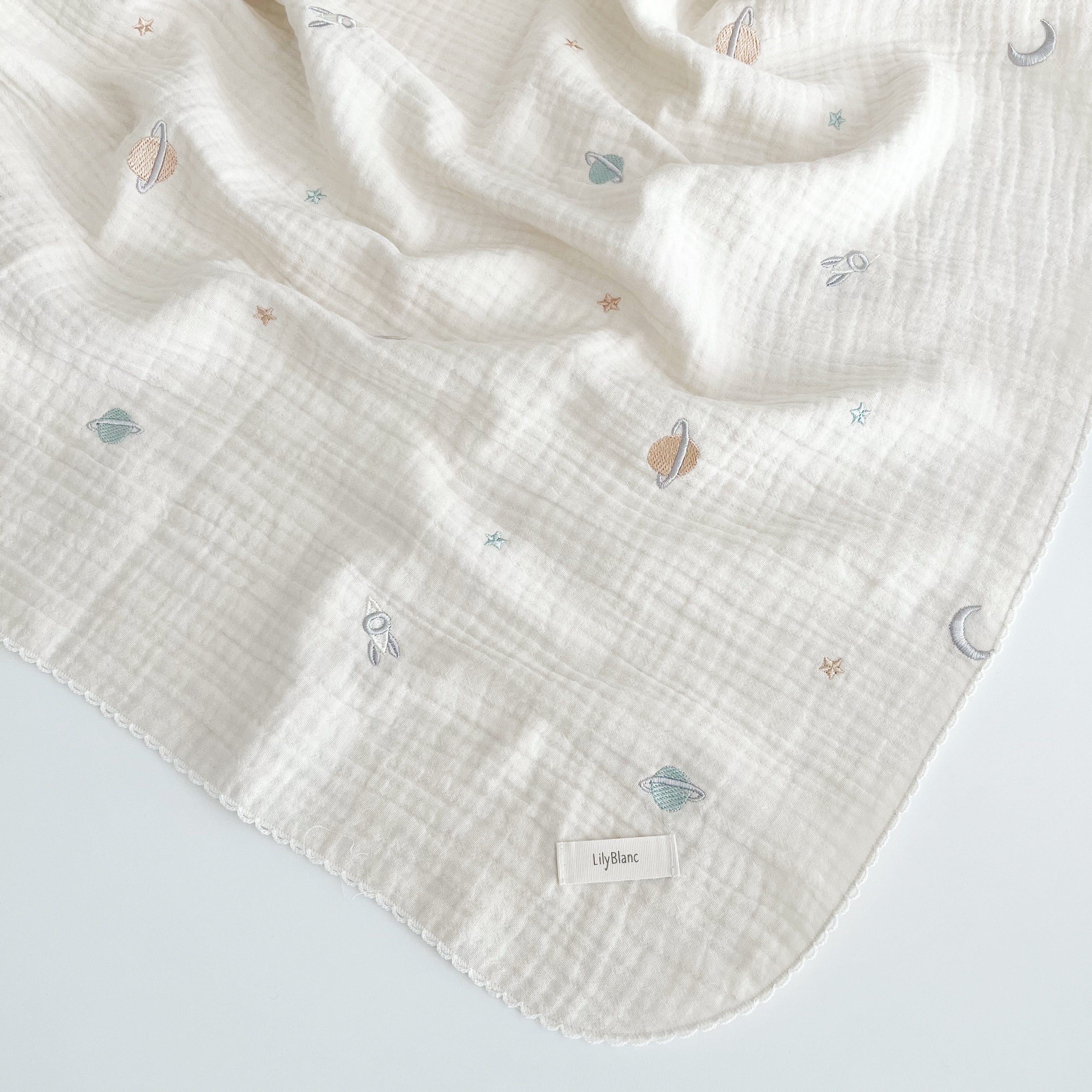 【LilyBlanc original】おくるみとしても使える宇宙刺繍ガーゼブランケット୨୧