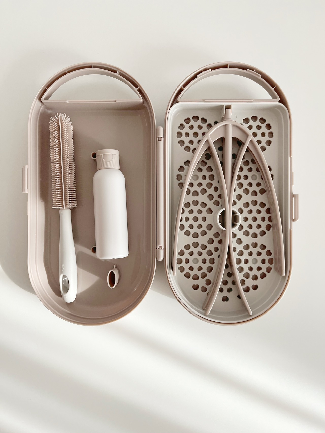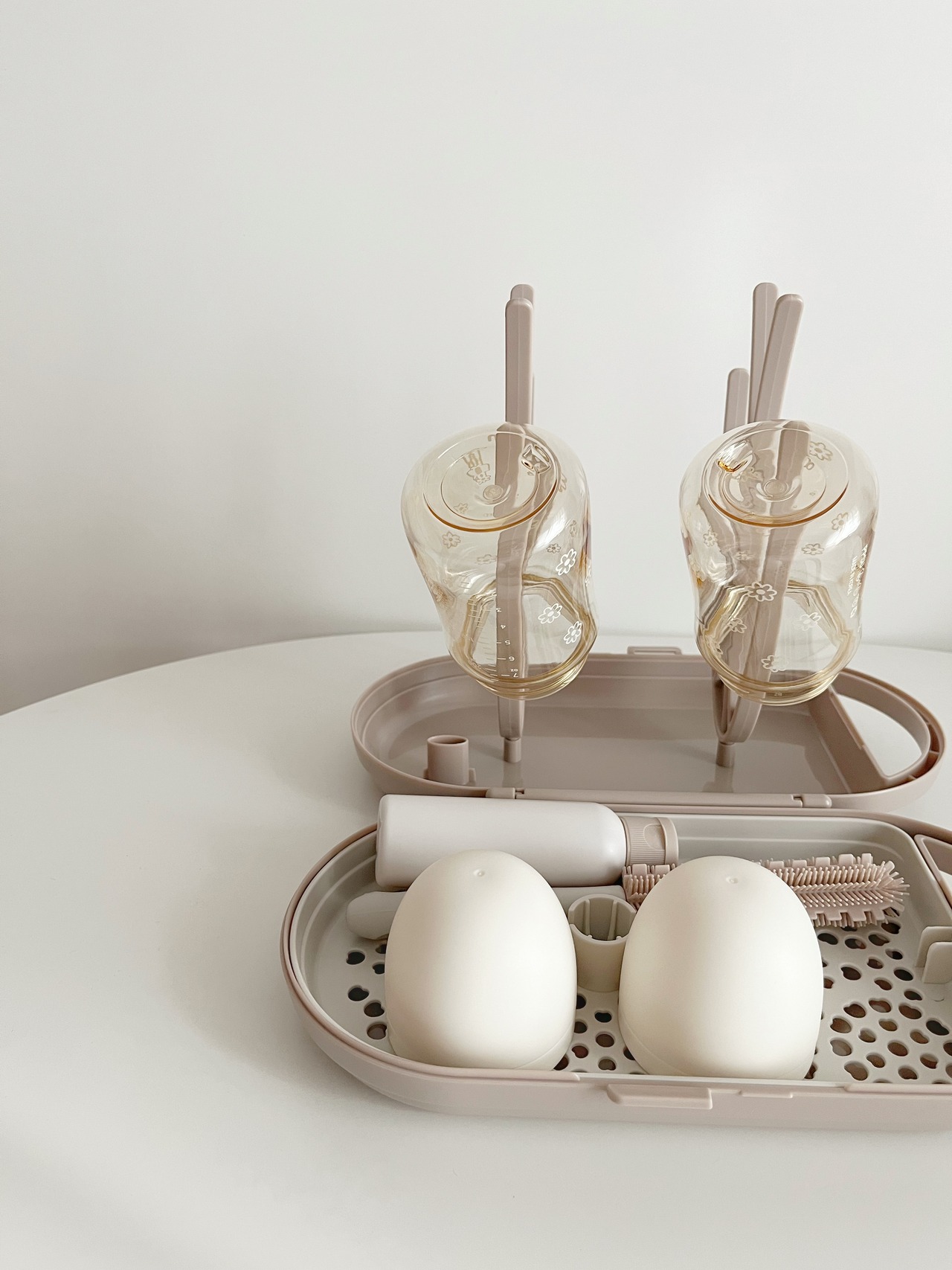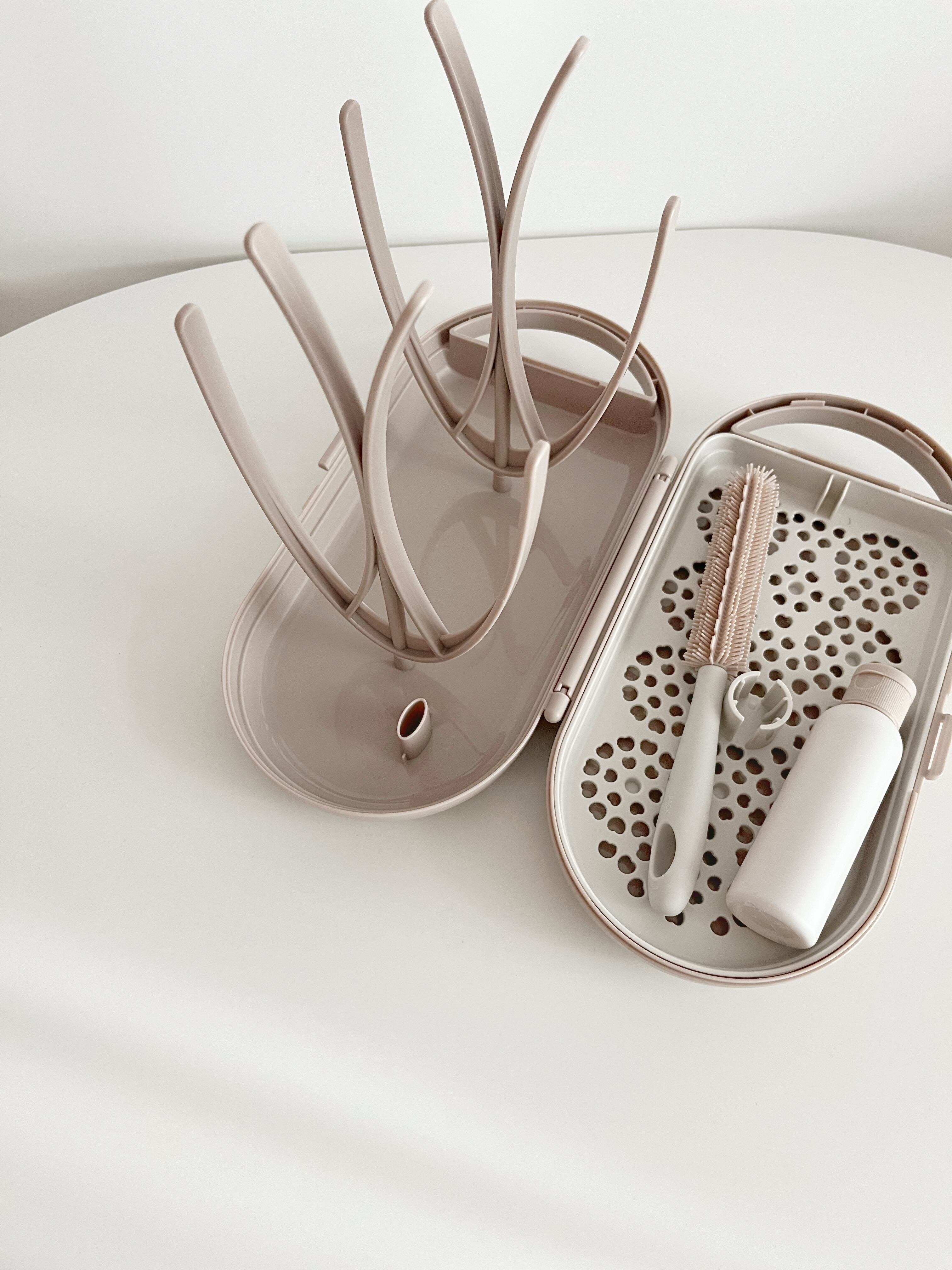 *こちらの商品は、水切りスタンドにミニシリコンブラシ、哺乳瓶用ミニ洗剤容器の3点セットです。(FDA認証済み)