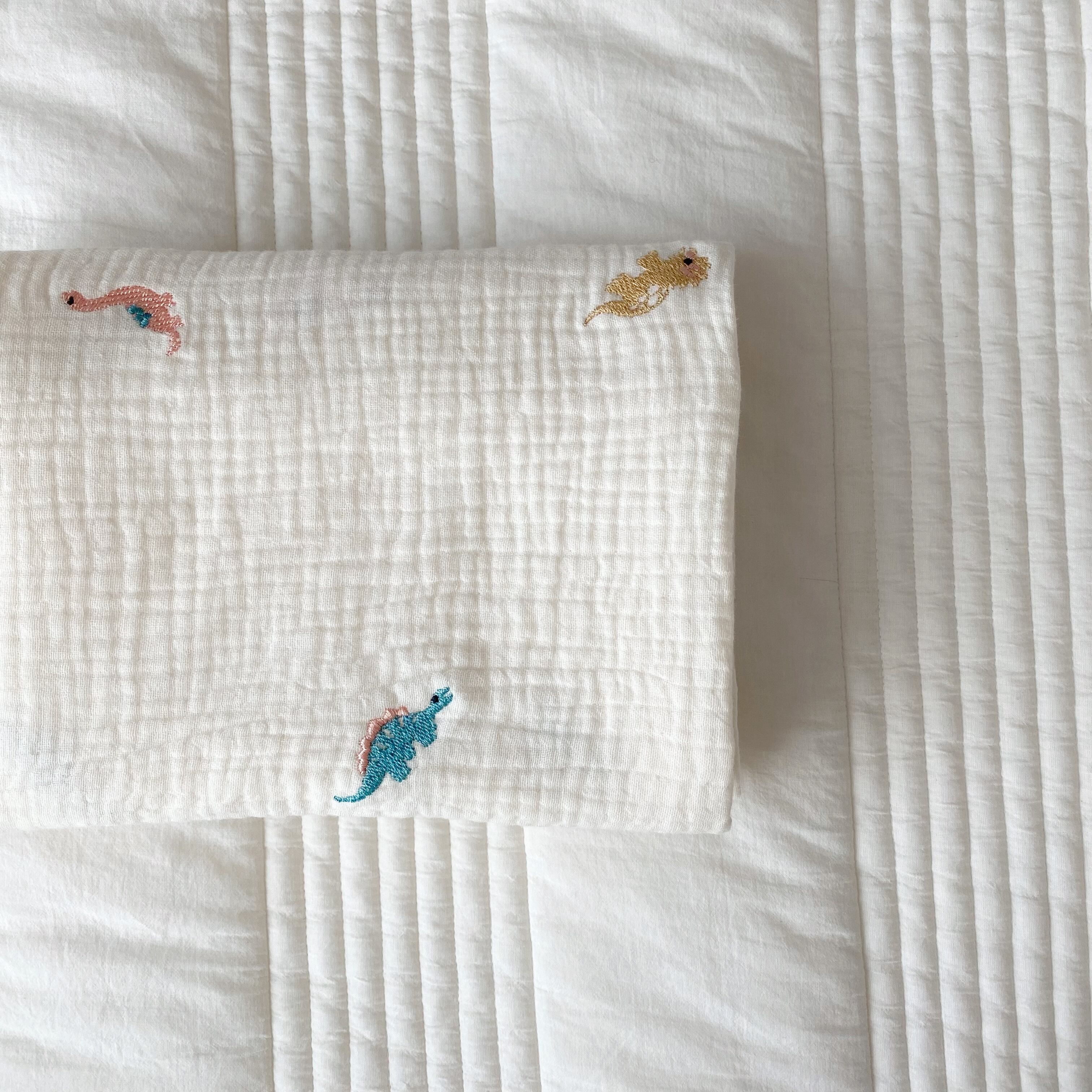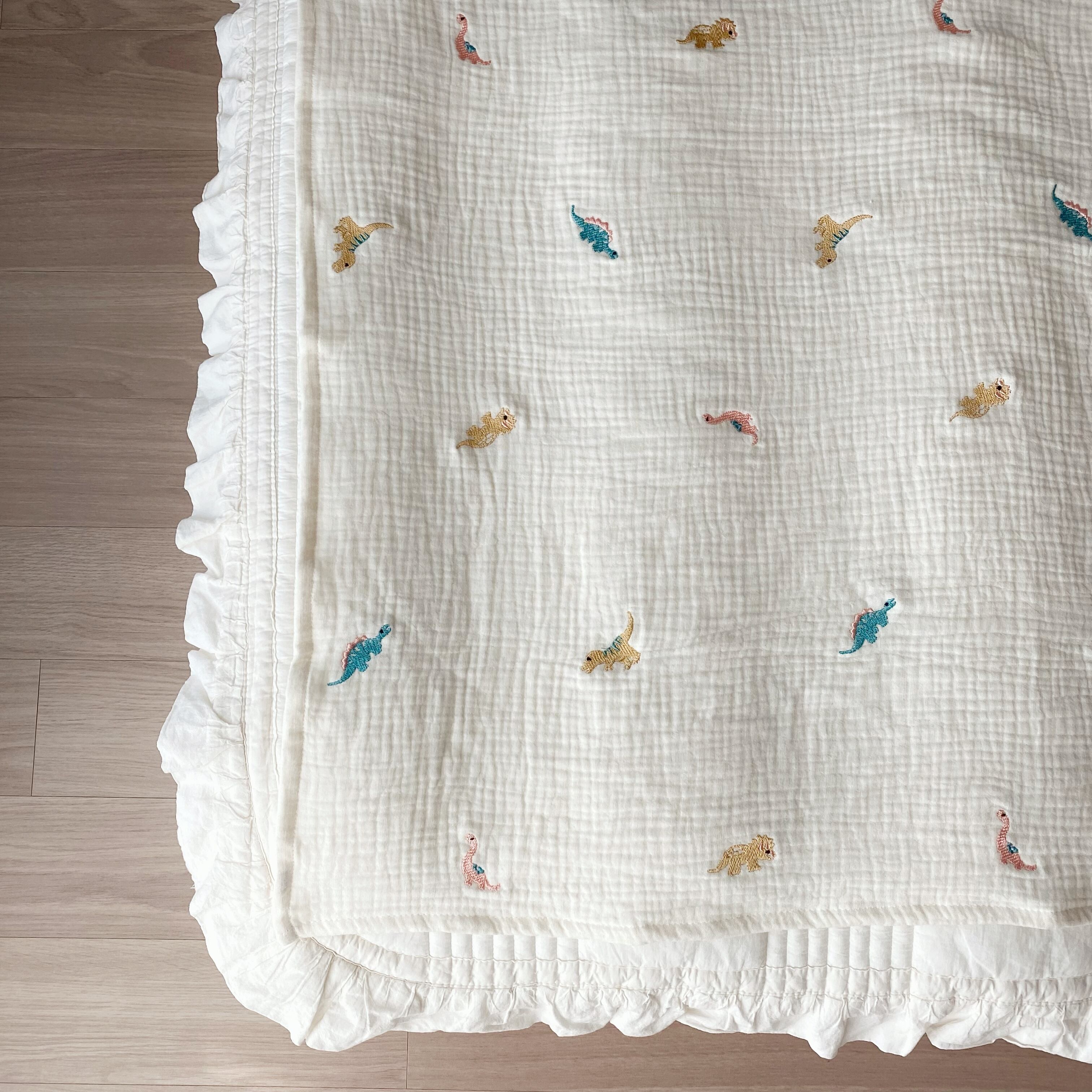 優しい肌触りの恐竜刺繍ガーゼブランケット୨୧