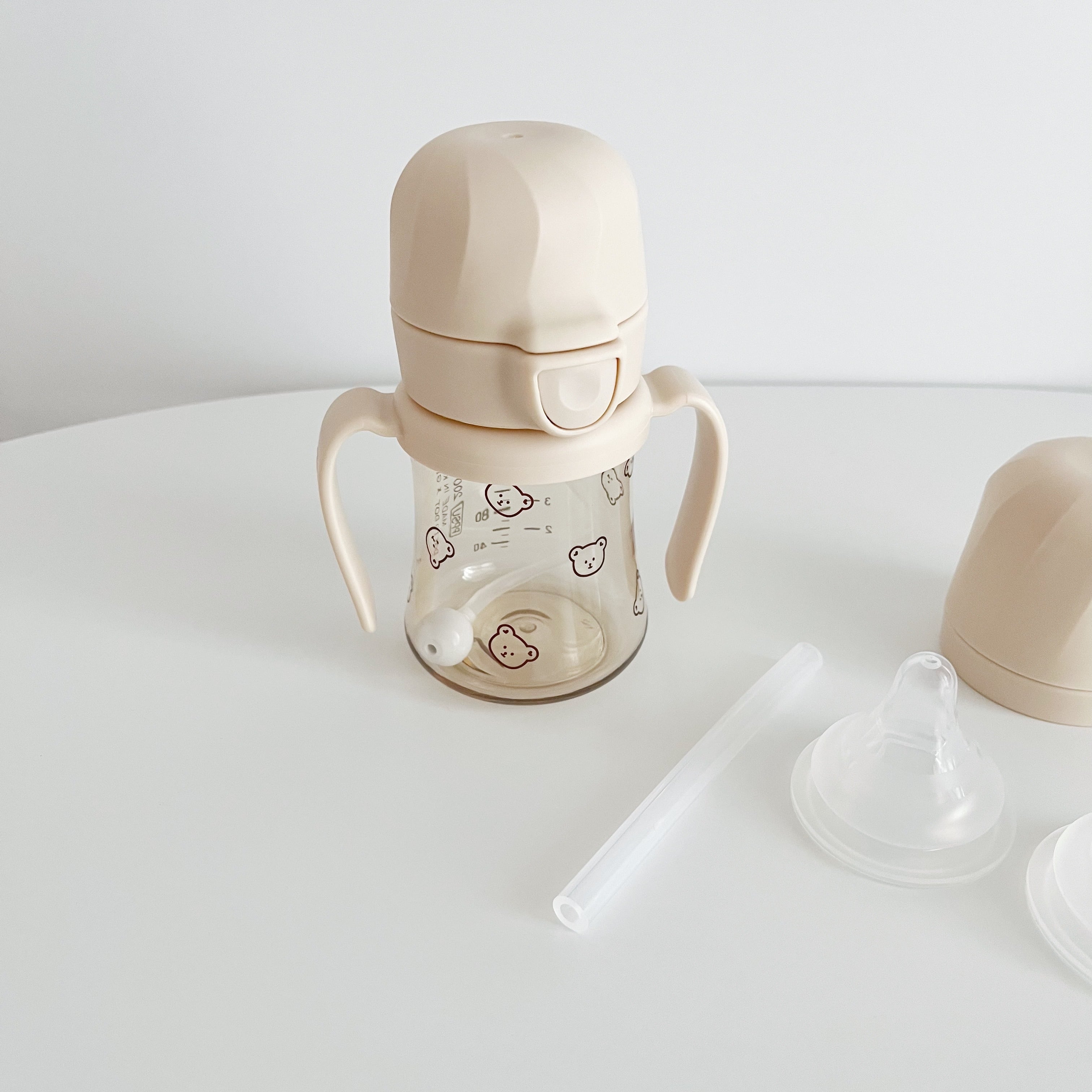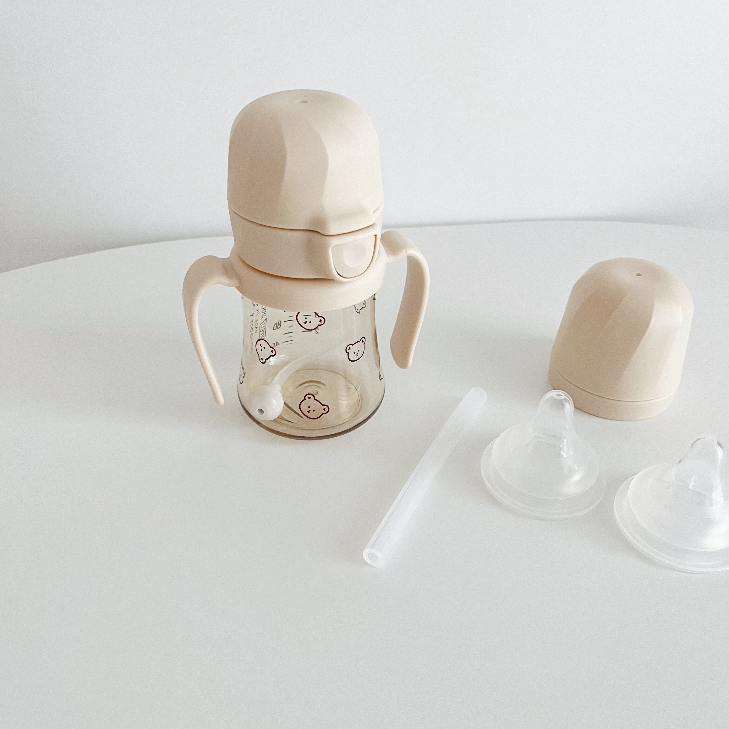 今回はストローマグとしてはもちろん、哺乳瓶としても使えるようにストローマグにニップルと哺乳瓶の蓋をセットにしました:)