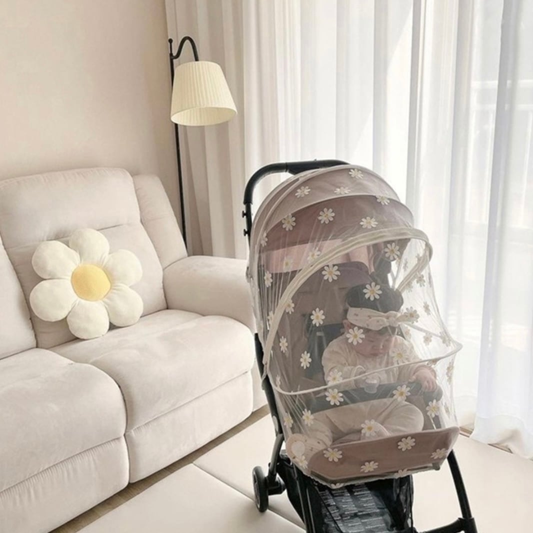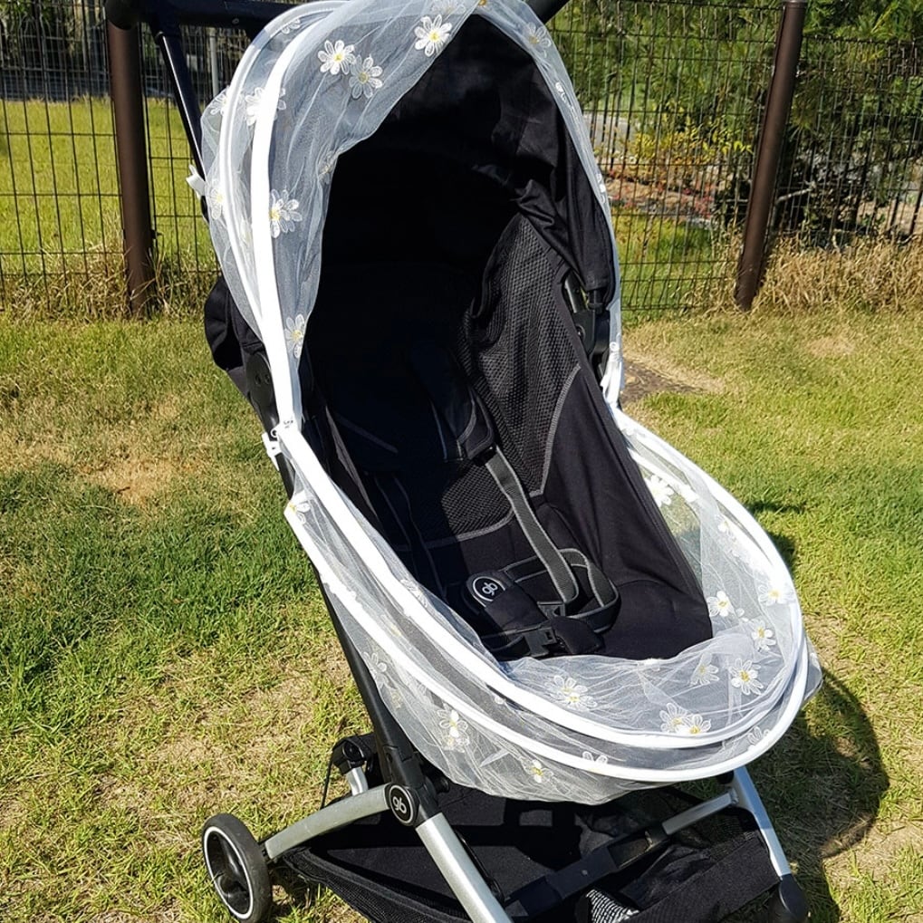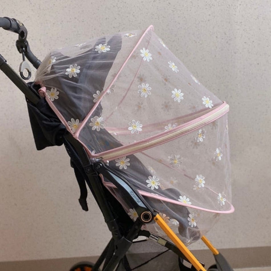 デイジー刺繍がキュートなベビーカー虫よけネット୨୧