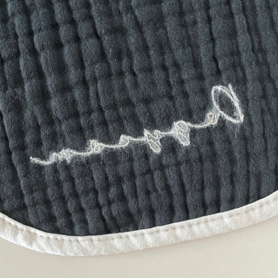 名前のシンプルな刺繍がとってもキュートなベビースタイセット。