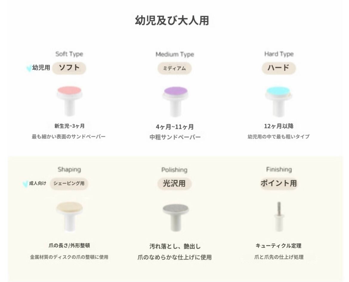 *やすり機能の替えが6種類付属しております。種類に関しましては写真にてご確認くださいませ:)